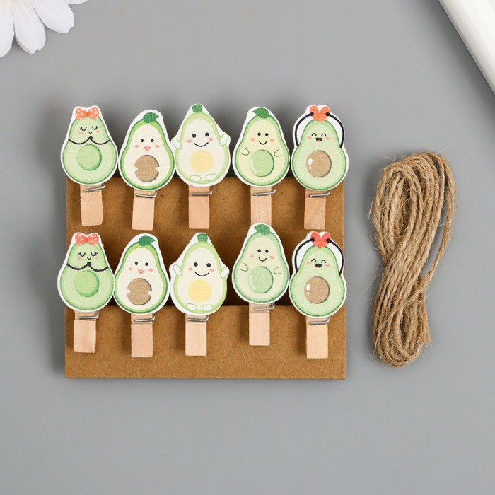 Декор для творчества дерево "Прищепка. Авокадо" набор 10 шт 3,8х1,9х1,2 см