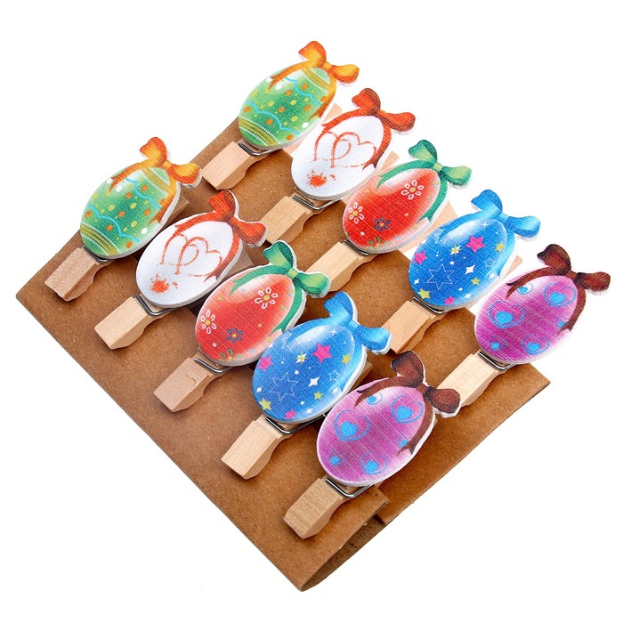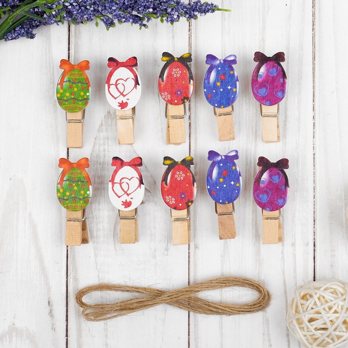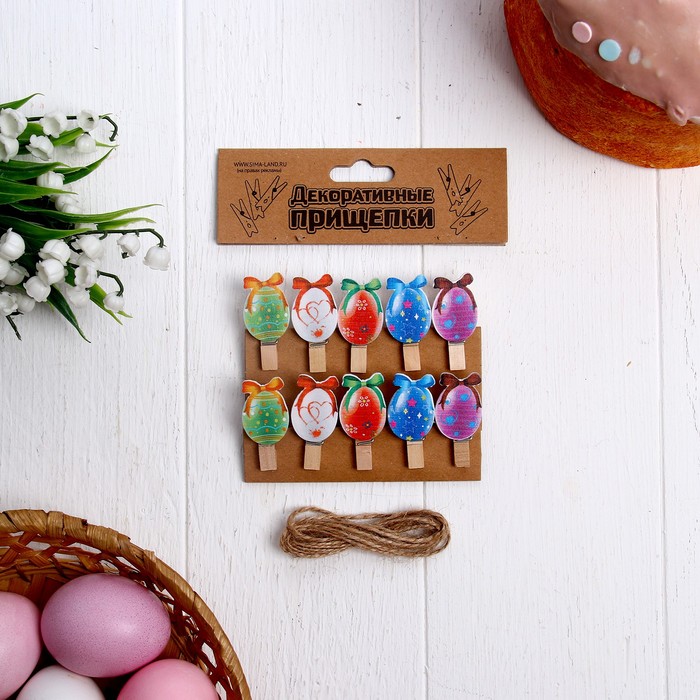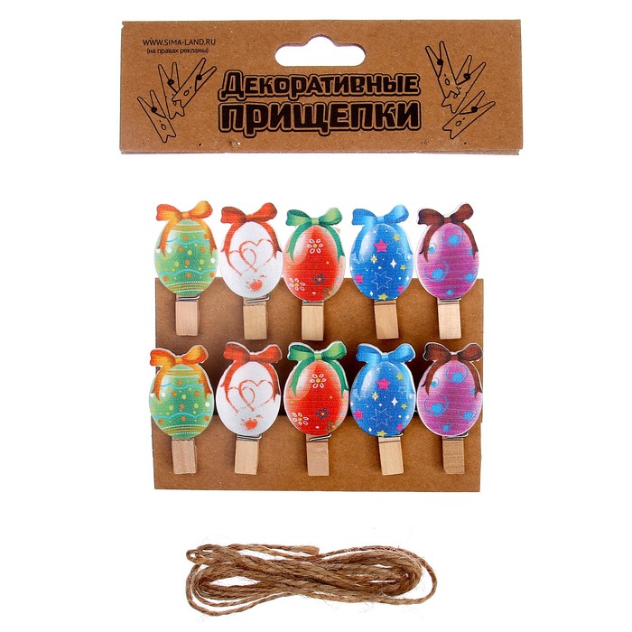 Прищепки декоративные с верёвкой для подвеса «Пасхальные яйца» набор 10 шт.