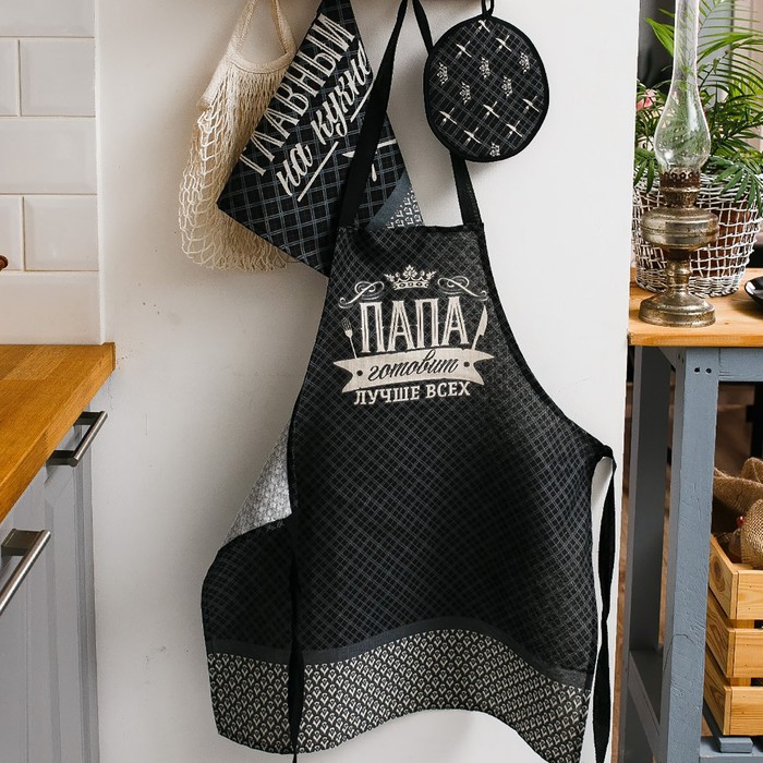 Фартук #34;Доляна#34; Папа готовит лучше всех, 60х70 см, 100 хлопок, 160г/м2 за 300.00 ₽ Купить оптом и в розницу на tijorat.com | Быстрая доставка | скидки