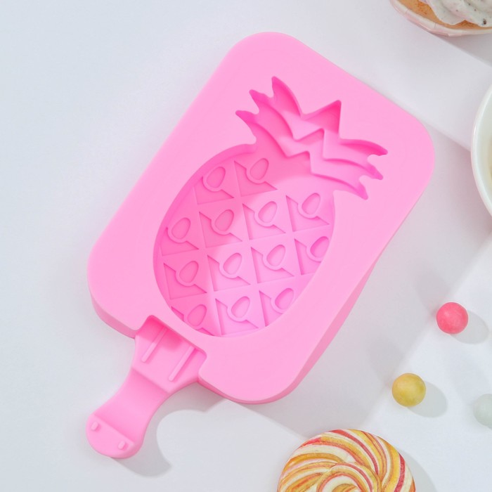 Форма силиконовая для мороженого Доляна «Ананас», 14×7,5×2,5 см, цвет розовый
