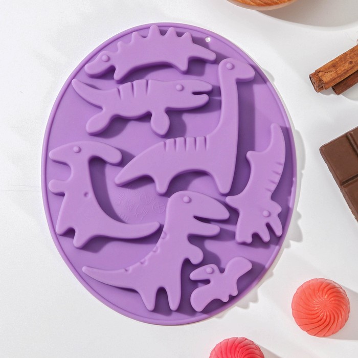 Форма силиконовая для льда и кондитерских украшений Доляна «Дино», 16,5×14×1 см, 7 ячеек, цвет МИКС