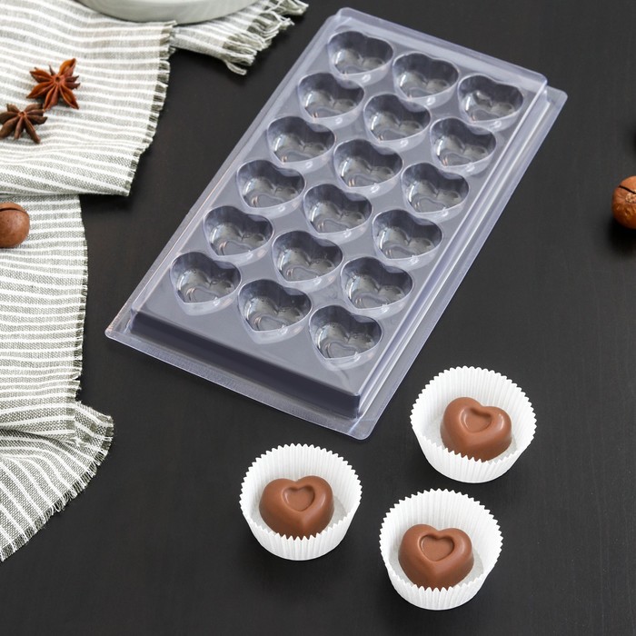 Форма для шоколада и конфет «Сердца», 18 ячеек, 22×11 см, цвет прозрачный