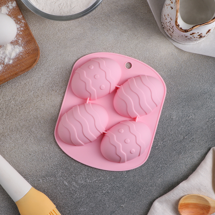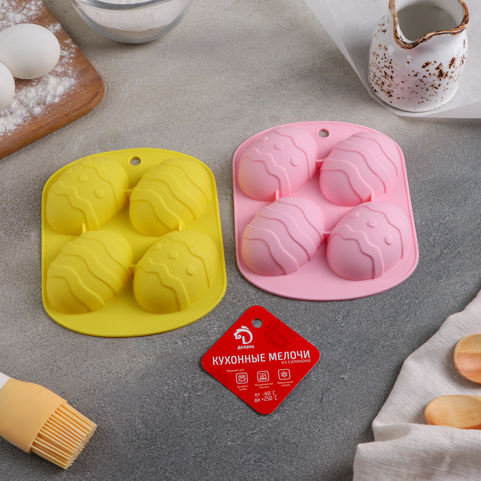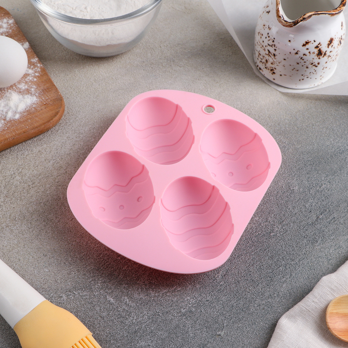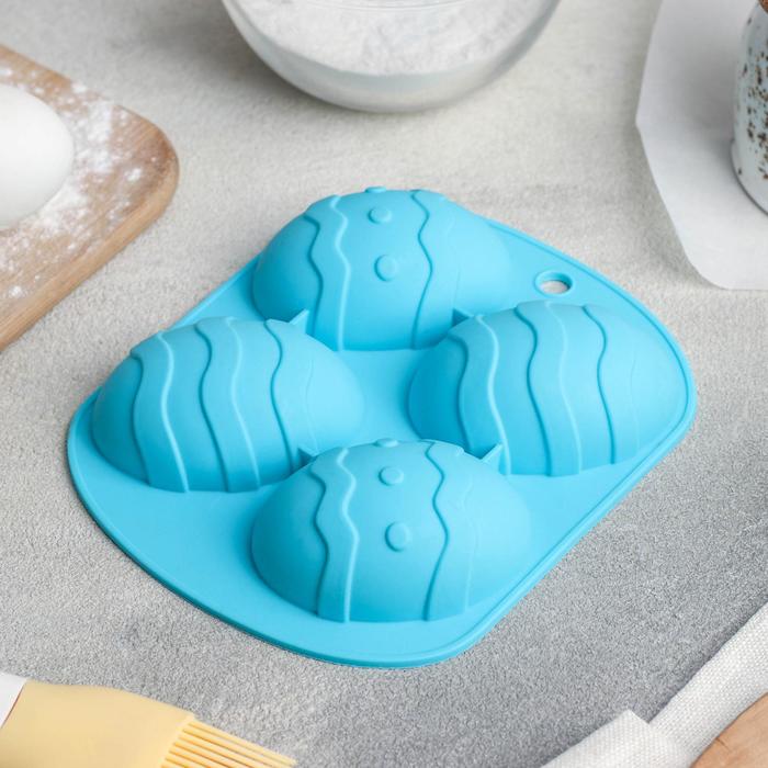 Форма силиконовая для выпечки Доляна «Пасха.Пасхальное яйцо», 15×12,6×2,5 см, 4 ячейки, цвет МИКС