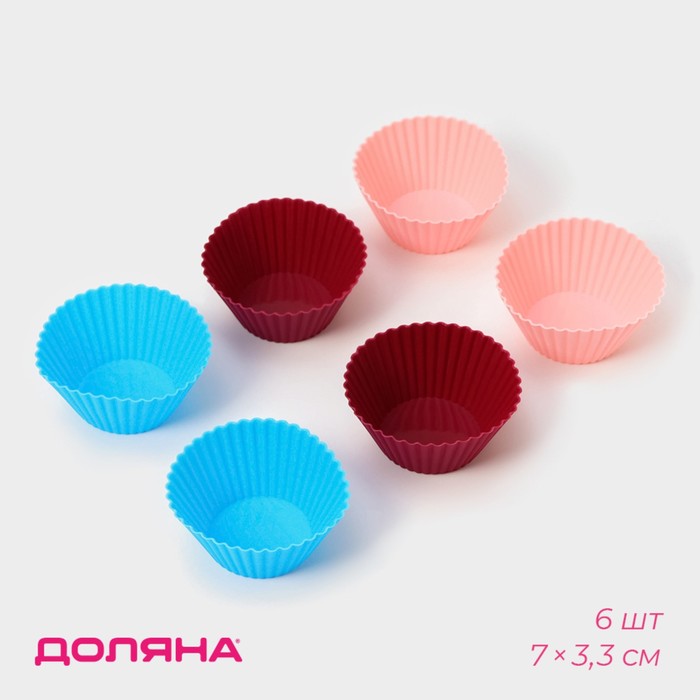 Набор силиконовых форм для выпечки Доляна «Риб.Круг», 7×3,3 см, 6 шт, цвет МИКС
