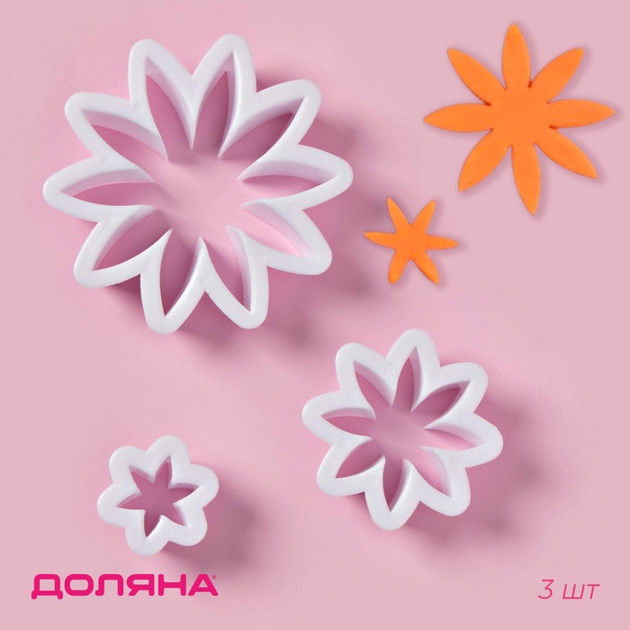 Набор выемок кондитерских для марципана и теста Доляна «Хризантема», 3 шт: d=6,5 см, d=3,5 см, d=2 см