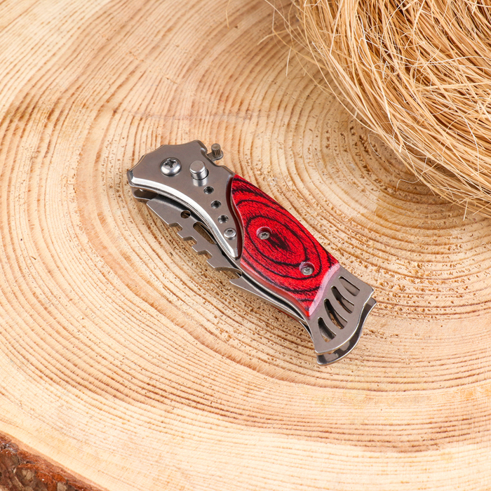 Нож оснащен кнопкой-фиксатором, которая позволит плотно зафиксировать инструмент в открытом и закрытом состоянии в единственном положении. Удобная рукоять не позволит выскользнуть ножу из рук в самый неподходящий момент при работе.