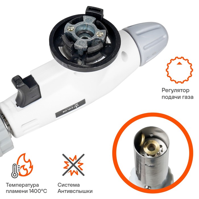 Представляет собой Насадку с соплом на газовый баллон оборудованую пьезоподжигом.В отличии от модели AGT-02 имеет более длинное сопло с увеличеным диаметром, а так же удобное разположение кнопки поджига. Спло данной горелки оборудованна регулятором подачи воздуха для изменения температуры и формы пламени. Применяется для розжига костра, разогрева трубопровода, нагрева предметов и проведения различных ремонтных работ. Горелка-насадка используется совместно со стандартным газовым баллоном цангового типа, который в комплект поставки не входит.