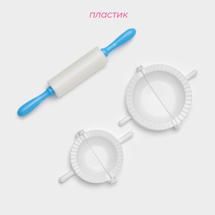 Набор для лепки пельменей Доляна, 3 предмета, формы d=7,5 и 10 см, скалка МИКС