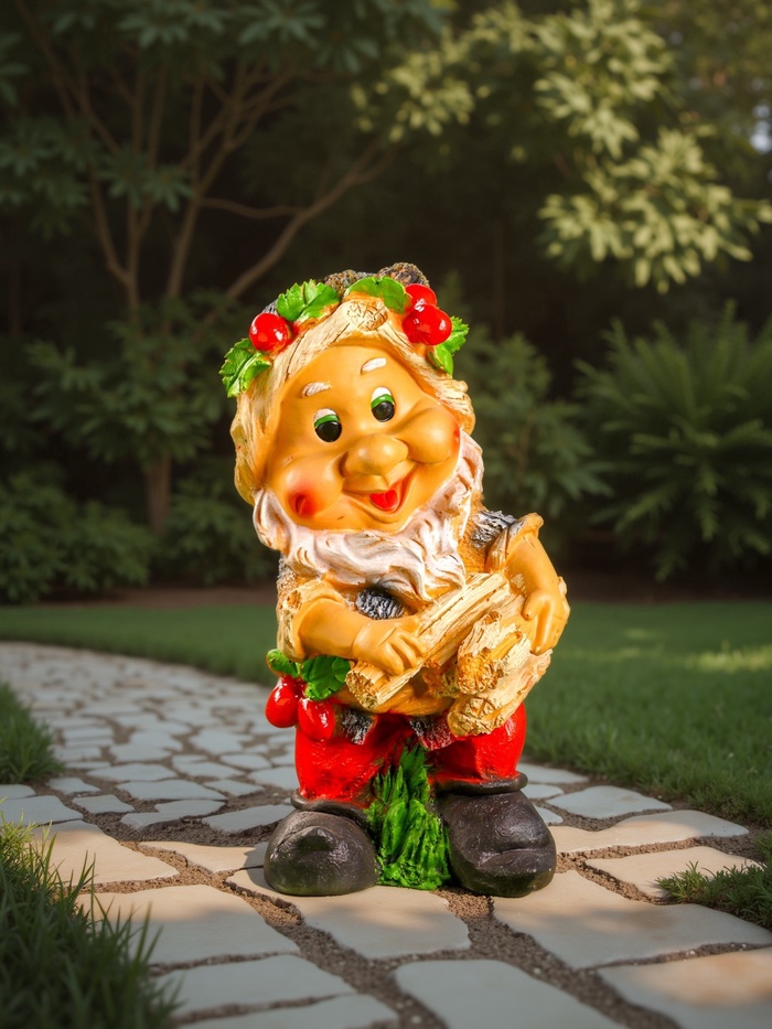 Садовая фигура "Гном с охапкой дров" 39х22см