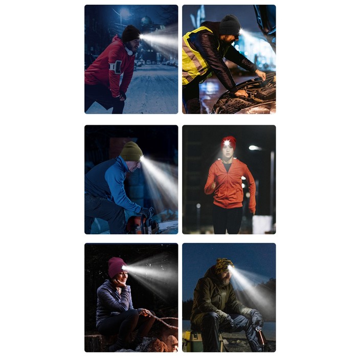 Теплая и удобная шапка оснащена съемными четырьмя LED — фонариками, что делает ее идеальным выбором для активного отдыха в условиях низкой освещенности. Благодаря этому аксессуару вы можете выполнять любые задачи даже в полной темноте, оставаясь при этом хорошо заметными на улицах и дорогах.