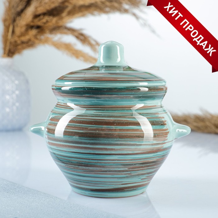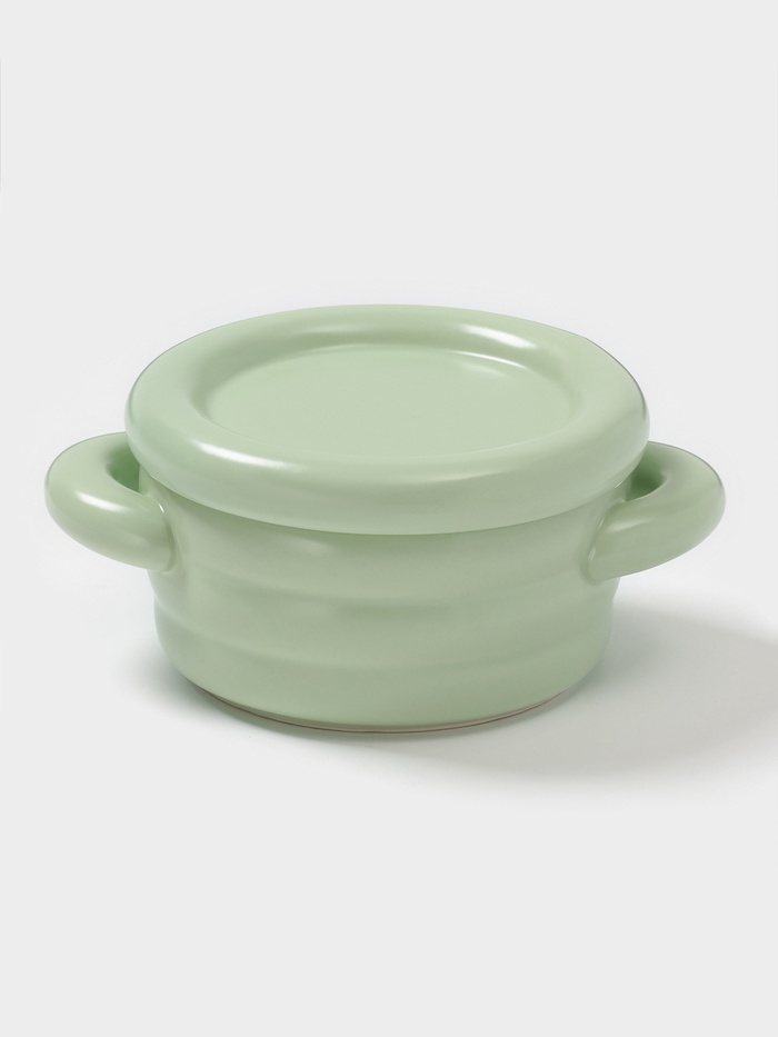 Горшочек для запекания Доляна «Зефир», 250 мл, 15×10,5×6,3 см, с ручками, с крышкой, керамика, зелёный
