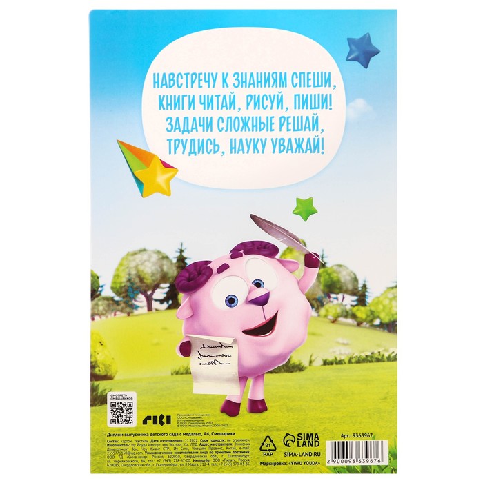 Набор выпускника диплом с медалькой, Смешарики за 50.00 ₽ Купить оптом и в розницу на tijorat.com | Быстрая доставка | скидки