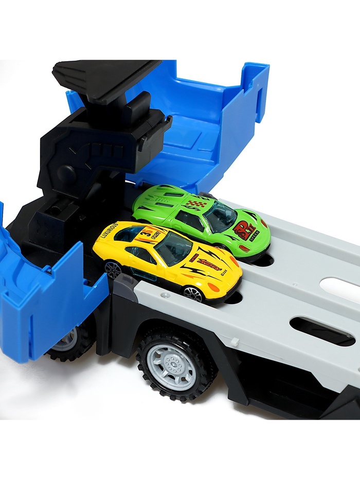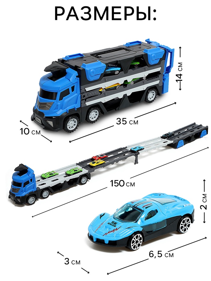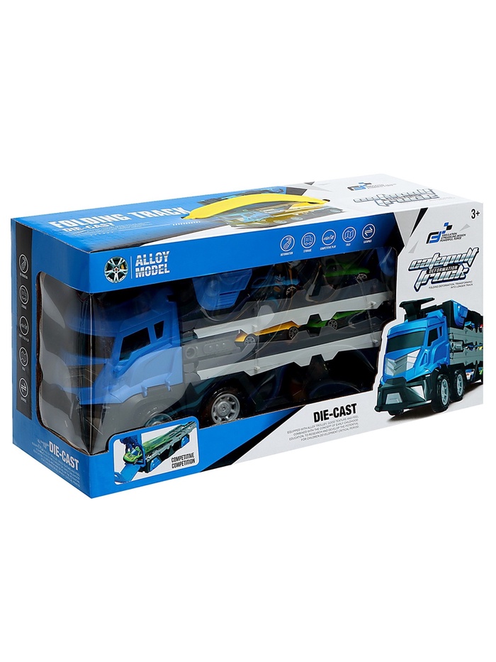 Парковка 2 в 1 Truck, 6 машинок, трансформируется в автотрек, звук, цвет синий