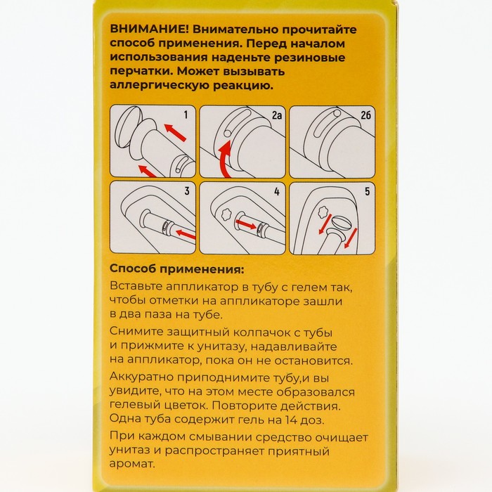 Освежитель легко устанавливается на внутреннюю поверхность унитаза. При необходимости вы можете нажать на дозатор, чтобы получить нужное количество средства. Гелевая основа обеспечивает устойчивость освежителя на поверхности унитаза, что позволяет ему продолжать эффективно выполнять свои функции даже после использования.
