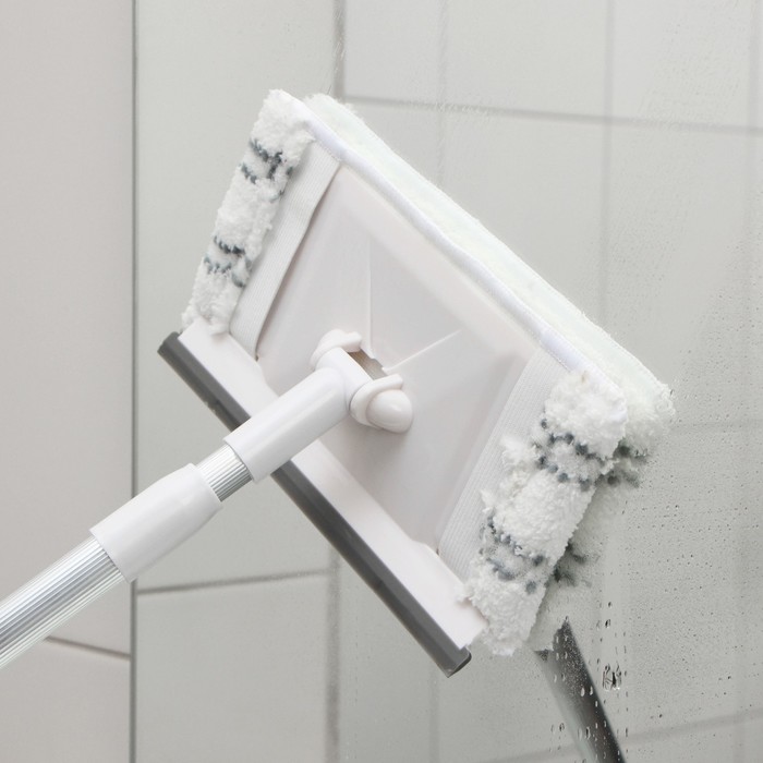 Окномойка с телескопической металлической ручкой Доляна, 13×13×55(92) см, поворотная головка, микрофибра, цвет синий