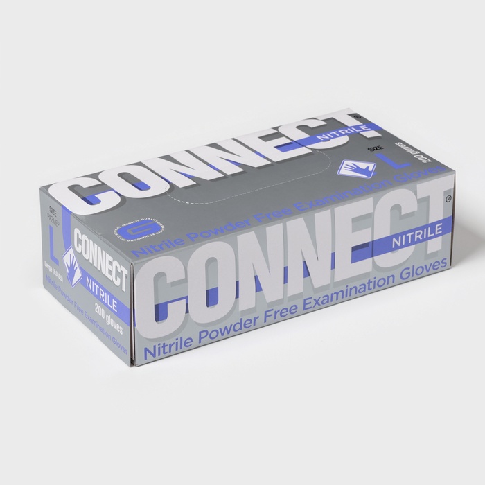 Перчатки нитриловые «Nitrile», смотровые, нестерильные, размер L, 200 шт/уп (100 пар), цвет голубой