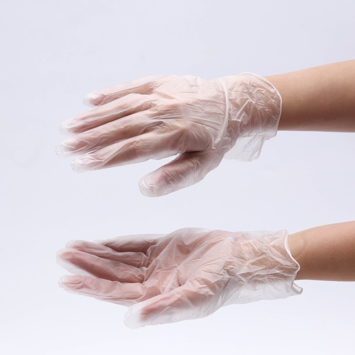 Перчатки виниловые, неопудренные, нестерильные, размер M, 50 пар, прозрачные