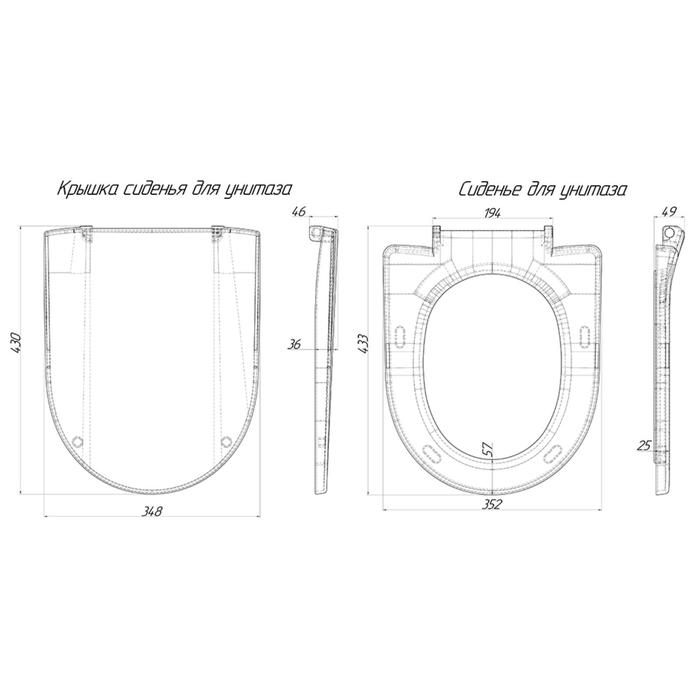 Сиденье для унитаза из полипропилена с креплением для унитаза.