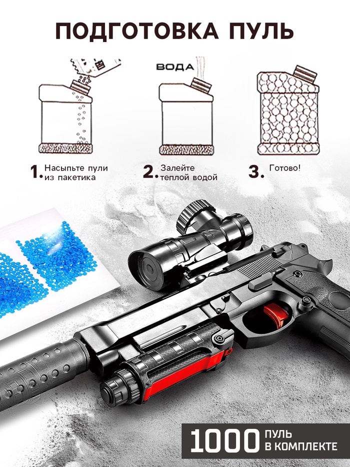 Пистолет «Беретта», стреляет гелевыми пулями, работает от аккумулятора