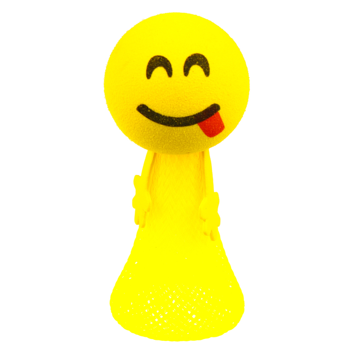 Игрушка работает по принципу пружины: сожмите её в кулачке и резко отпустите — она выпрыгнет на ничего не подозревающего соседа. Или поставьте на ровную поверхность и надавите на неё сверху. Ребятам наверняка захочется устроить соревнование, чья стрелялка подлетит выше!