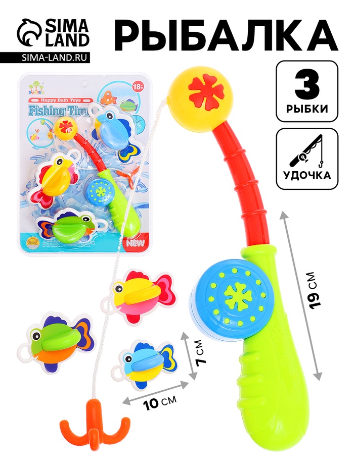 Магнитная рыбалка для детей «Морские жители», 1 удочка , 1 сачок, 6 игрушек, цвета МИКС