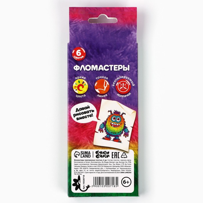 Фломастеры в коробке 6 цветов БукиБяки