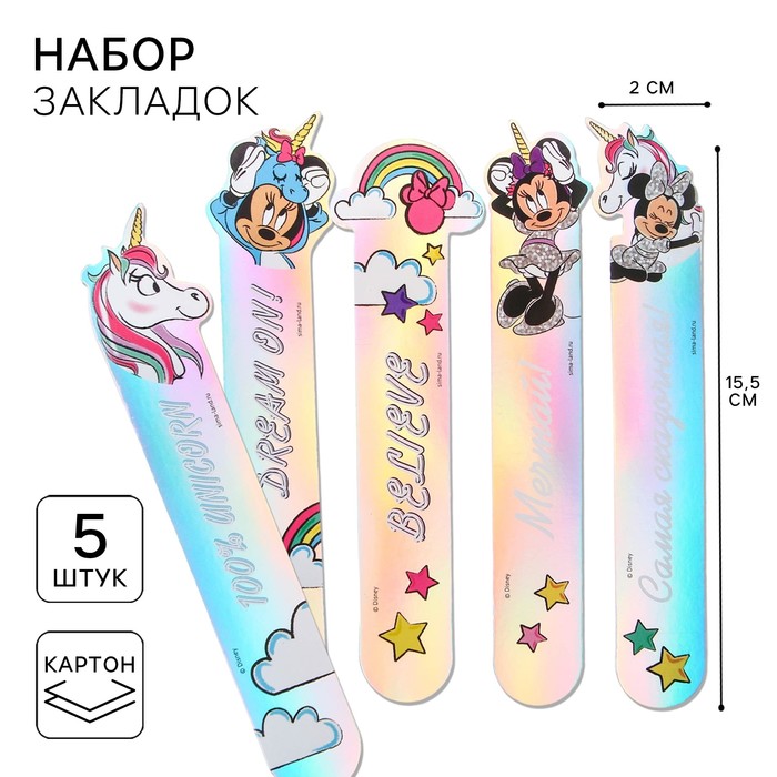 Набор открыток-закладок "Мечтай", Минни Маус, 5 шт.