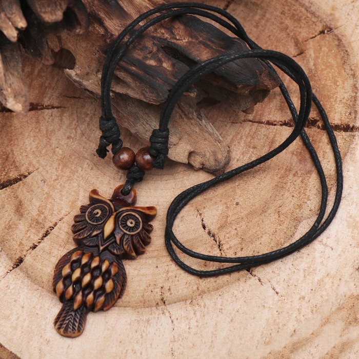 Кулон на шнурке "Филин", цвет коричнево-чёрный на чёрном шнурке, 80см