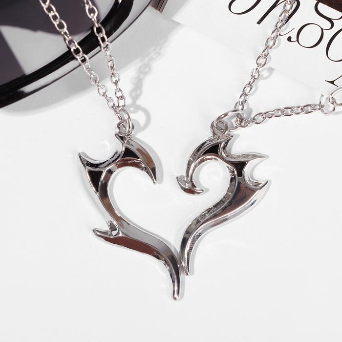 Кулоны "Неразлучники" горящее сердце, цвет чернёное серебро, 45 см