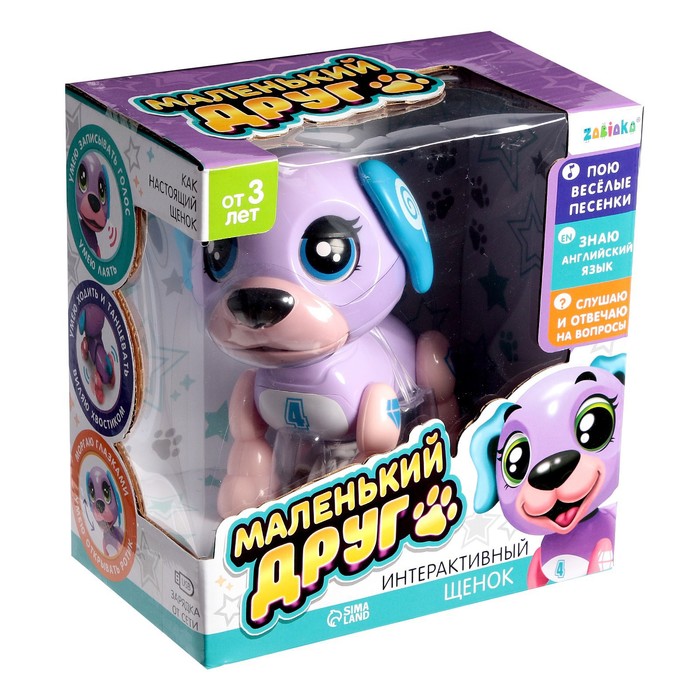 Интерактивная игрушка-щенок «Маленький друг», поёт песенки, отвечает на вопросы, цвет фиолетовый