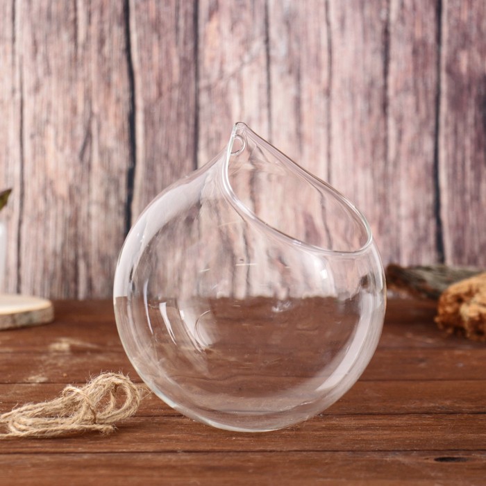 Флорариум «Шар капля», с верёвкой, 12×12×13 см, стекло, прозрачный