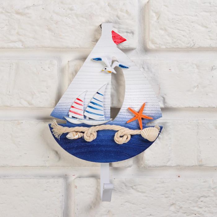 Вешалка интерьерная «Штурвал», 3 крючка, бело-синяя, 45 х 28 х 5 см