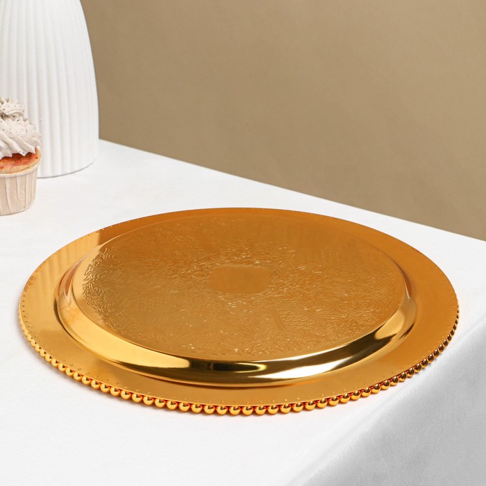 Поднос сервировочный «Роскошь», d=31,5 см, цвет золотой