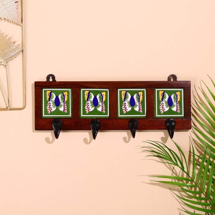 Вешалка "Караван"бабочки, 22*4*12см, дерево, 4 крючка цвет микс