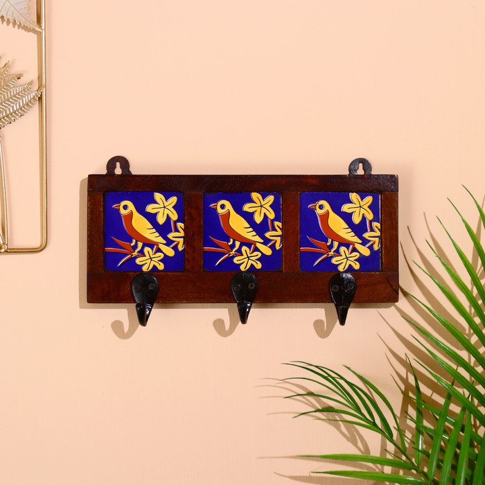Вешалка интерьерная «Штурвал», 3 крючка, бело-синяя, 45 х 28 х 5 см
