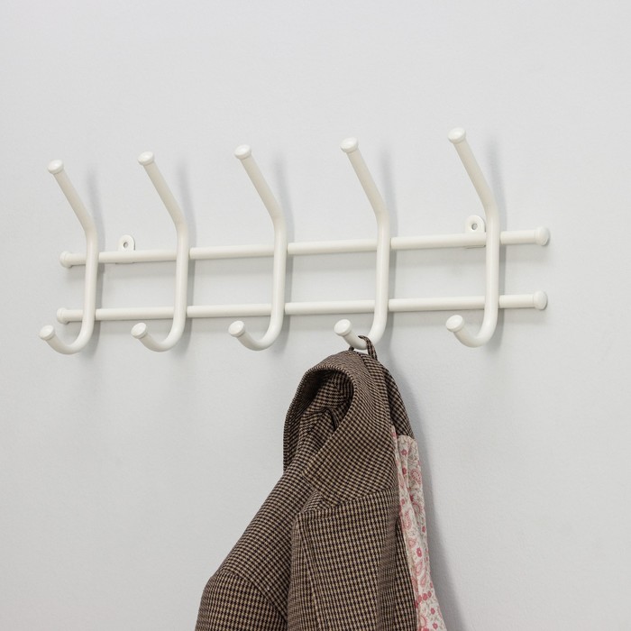 Вешалка настенная на 10 крючков Доляна «Лето», 55×3,5×5 см, цвет серебряный