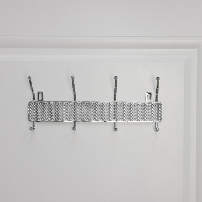 Вешалка настенная Доляна «Шах», 4 двойных крючка, 33×13×6 см, цвет хром