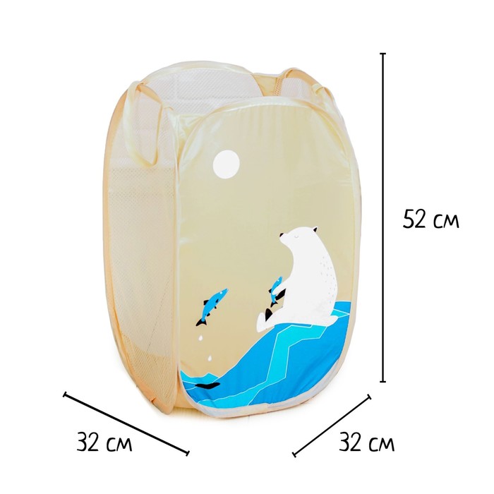 Корзина-сетка Доляна «Северный мишка», складная, 32×32×52 см, цвет бежевый