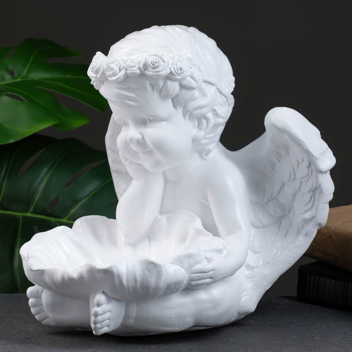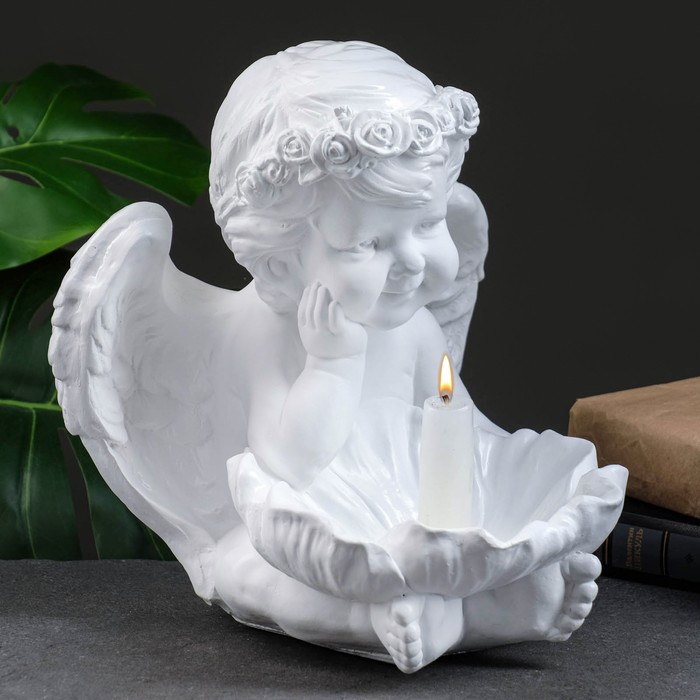Фигура - подсвечник "Ангел с кувшинкой" 23х23х27см белый