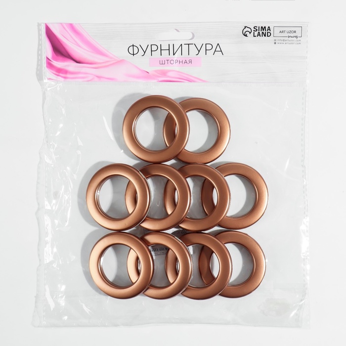 Люверсы для штор, d = 3,1/5,5 см, 10 шт, цвет коричневый