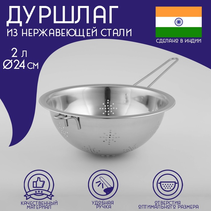 Дуршлаг из нержавеющей стали Доляна «Индия», 2 л, d=24 см, длинная ручка