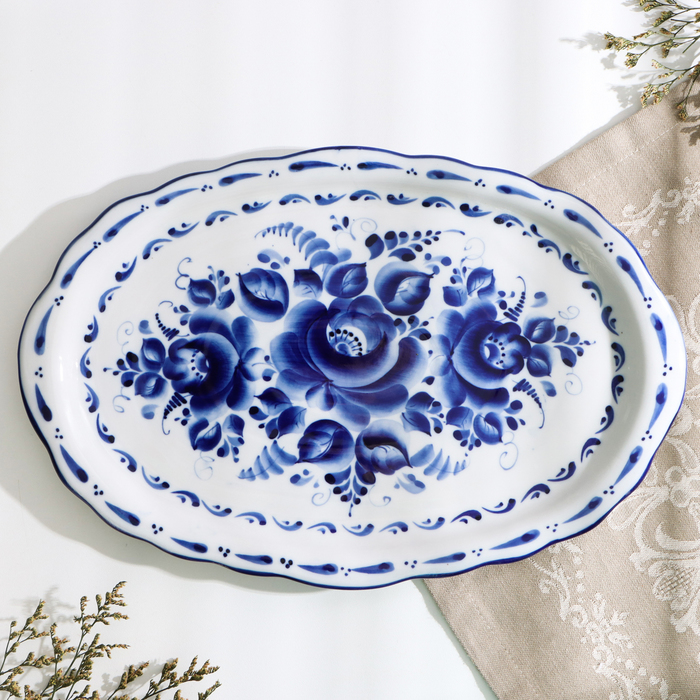 Поднос «Силуэт», 33,5х22х2 см, гжель за 5307.50 ₽ Купить оптом и в розницу на tijorat.com | Быстрая доставка | скидки