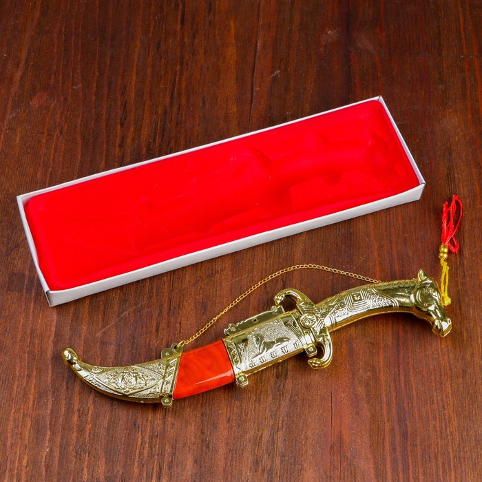 Сувенирный нож на подставке, скорпион на лезвии и рукоятке, 53,5 см