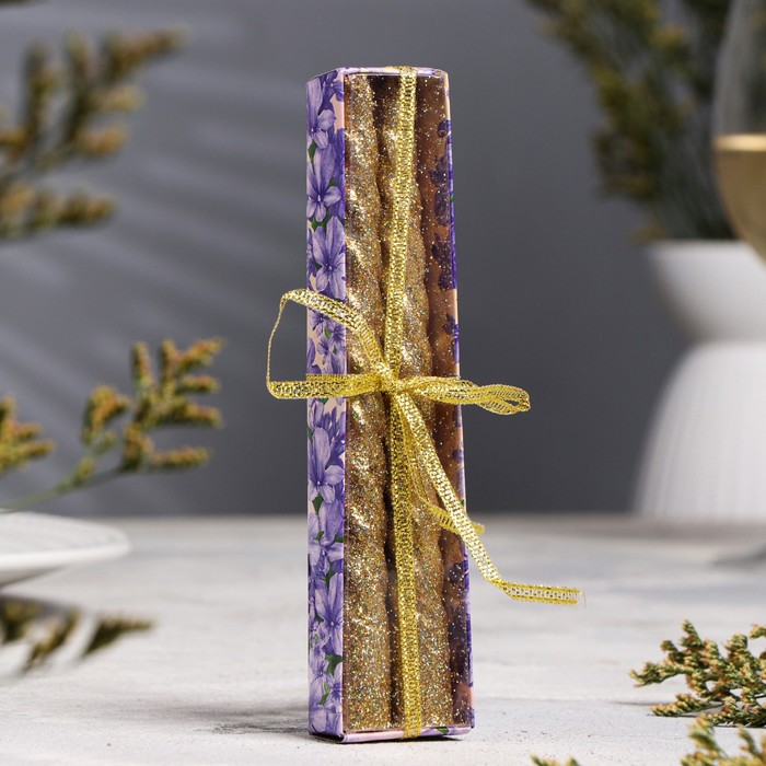 Набор свечей витых, 1,5х 15 см, 2 штуки, блестка, золото за 50.00 ₽ Купить оптом и в розницу на tijorat.com | Быстрая доставка | скидки