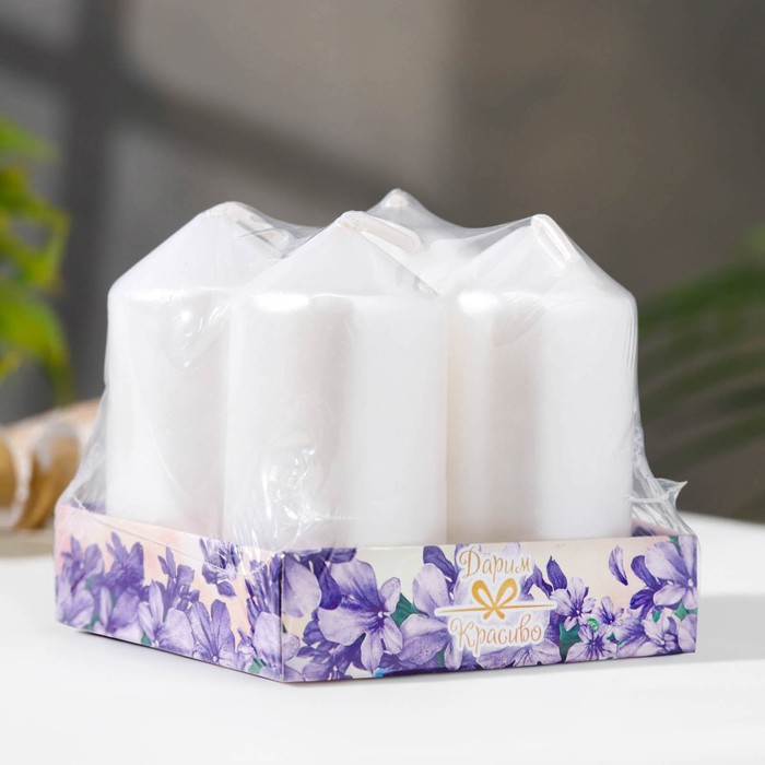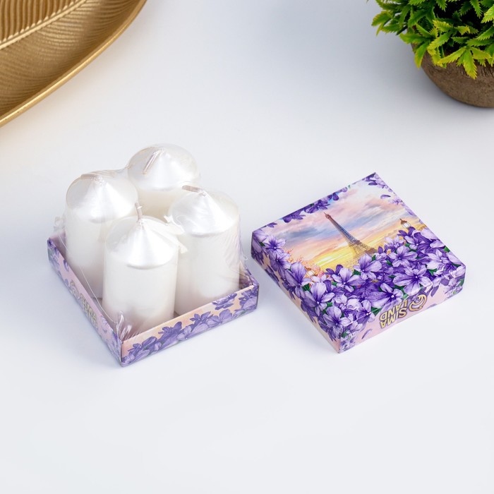 Набор свечей "Столбик", 4 штуки, перламутровый 7х3,8см