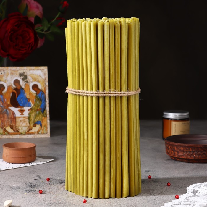 Эту свечу вы сможете использовать как в церковном, так и в домашнем обиходе для религиозных обрядов. Она не содержит ароматических примесей и красителей.
