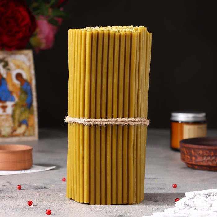 Эту свечу вы сможете использовать как в церковном, так и в домашнем обиходе для религиозных обрядов. Она не содержит ароматических примесей и красителей.