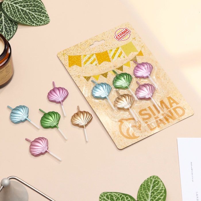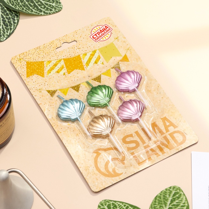 Набор свечей для торта, 5 шт "Морские ракушки", разноцветные