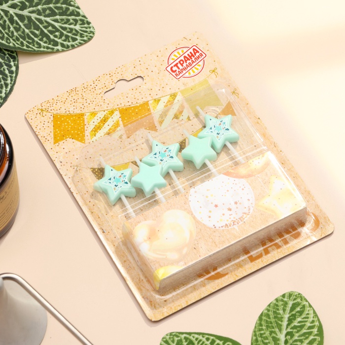 Набор свечей для торта, 5 шт "Звездочки", голубой