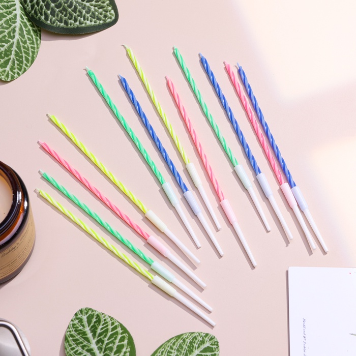 Свечи для торта коктейльные с подставками, 12 см, набор 12 шт